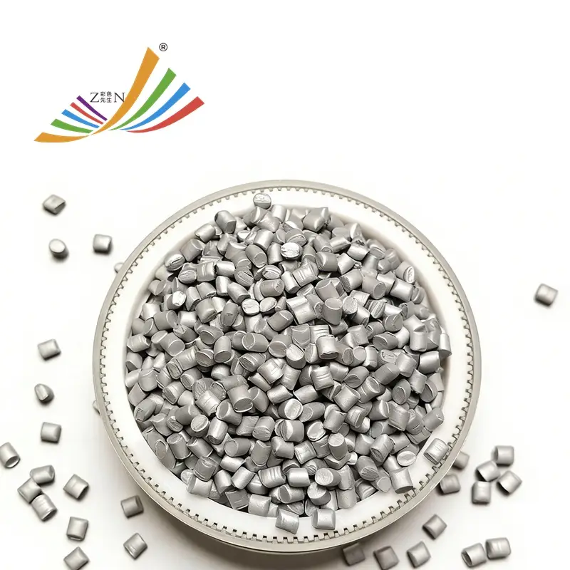 Silver Color Masterbatch is a high-performance color concentrate specifically engineered for plastic packaging applications. Formulated with premium-grade carrier resins and uniformly dispersed ultra-fine, high-reflectivity aluminum silver or pearl-effect pigments, it delivers a brilliant, consistent metallic finish. This product is optimized for use in a wide range of packaging products, including express bags, various packaging films, and plastic bottles.